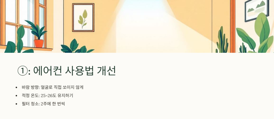 🌿 해결책 ① 에어컨 바람 방향과 온도 조절