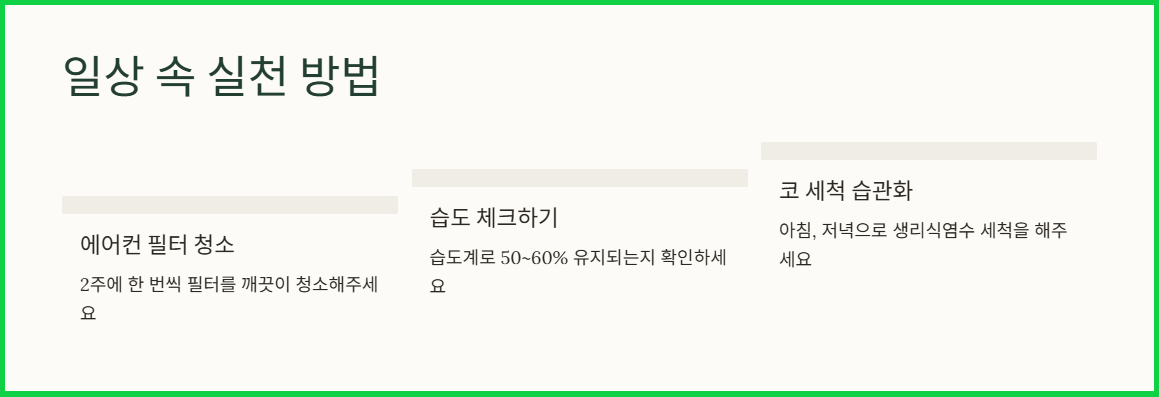 💡 오늘 집에 가자마자 에어컨 필터부터 점검하고, 가습기로 습도부터 챙겨보세요!