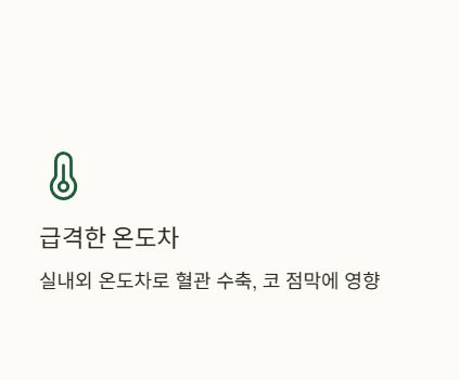 집 안의 먼지, 진드기, 냉방 필터에서 나오는 곰팡이균 등이 알레르기 반응을 일으킬 수 있어요. 특히 습한 여름철은 알레르기 유발 물질이 많아지는 계절입니다. - ③ 급격한 온도 차이